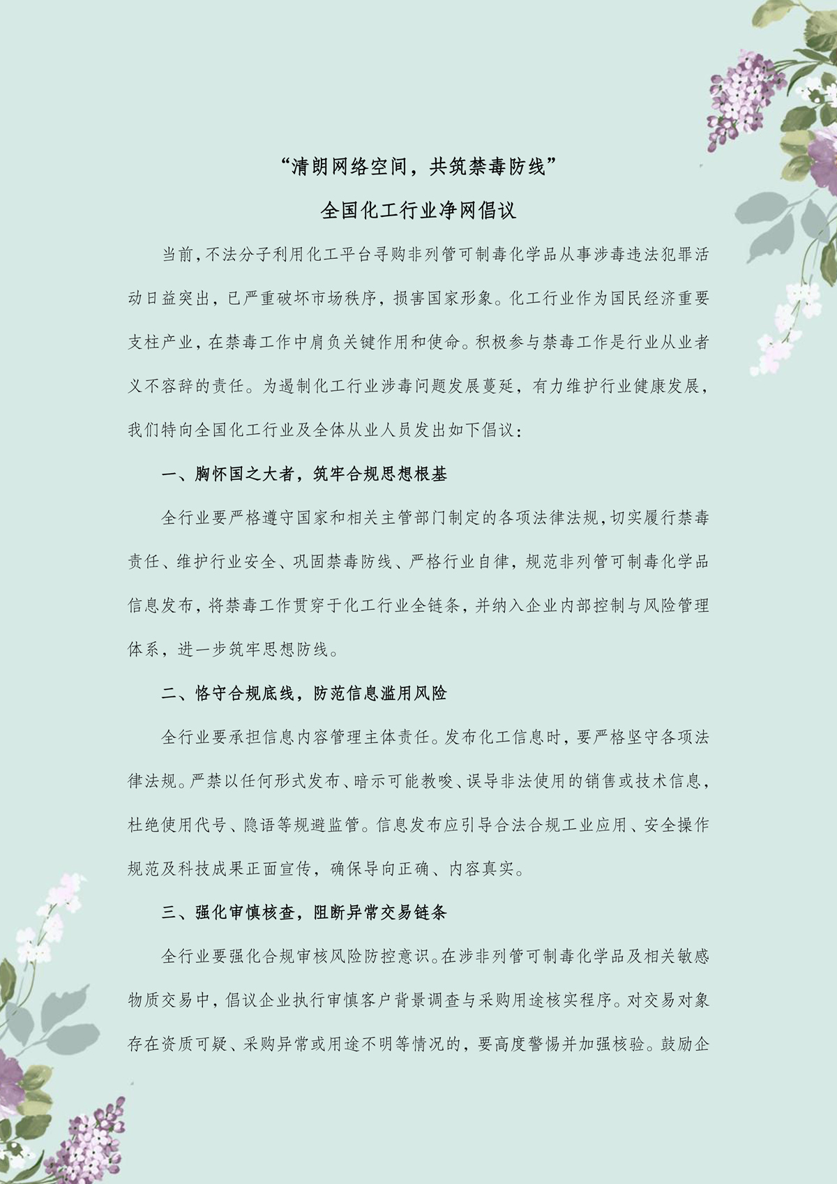 “清朗网络空间,共筑禁毒防线”全国化工行业净网倡议